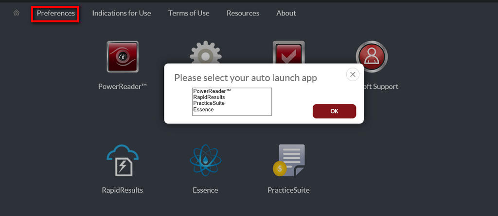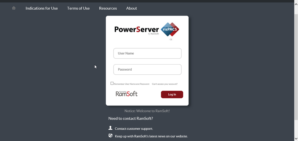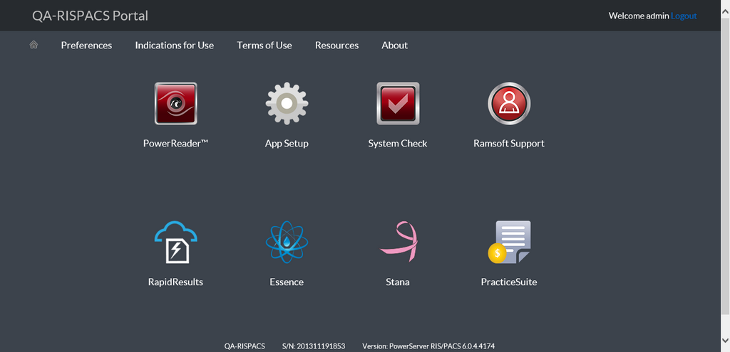 PowerServer 6.0 introduces a new login portal that provides the user with quicker access to relevant applications. The new login portal allows access to PowerReader, System Check, RamSoft Support, RapidResults, Essence and PracticeSuite, and is not limited to these applications.