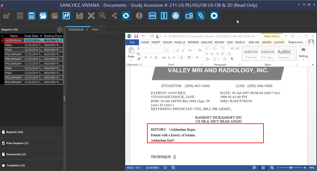 The Amend report option will attach an addendum to the final report and once the amendment has been saved, you can see that a Addendum report is generated with the Addendum section displaying the amendment.