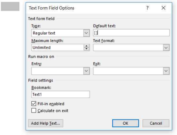 Step 4: Click the "Text Form Field" to add a field