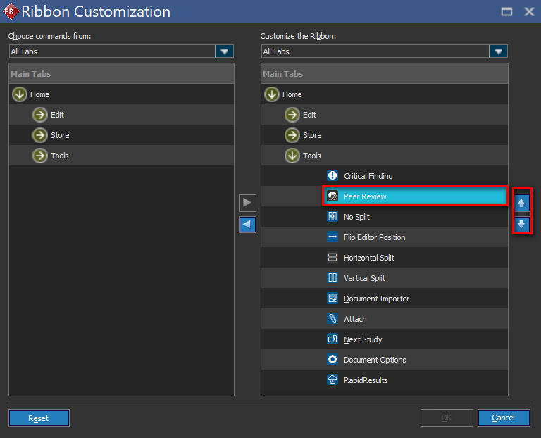 - Click the ">" button to add the command to the ribbon
