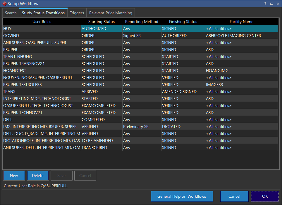 - If this transition applies to a particular imaging facility, select the Facility Name, or leave it as All Facilities.