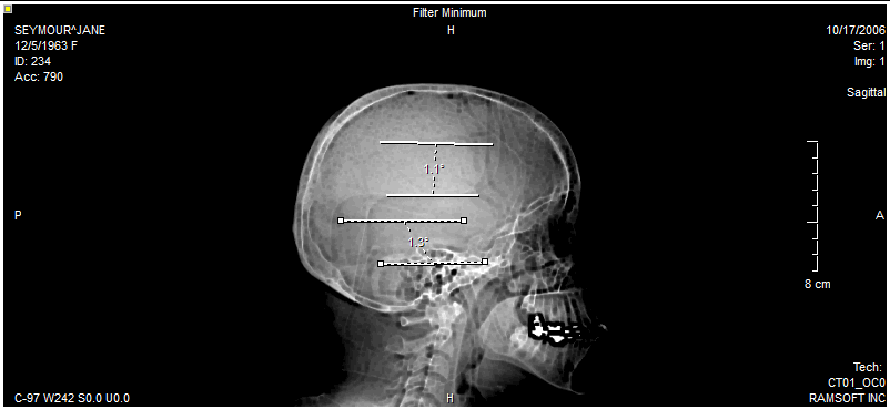 If the apex of the angle you need to measure is located off screen, the Cobb Angle tool can be used. This tool is accessible from the Angle tool pull-down menu.
