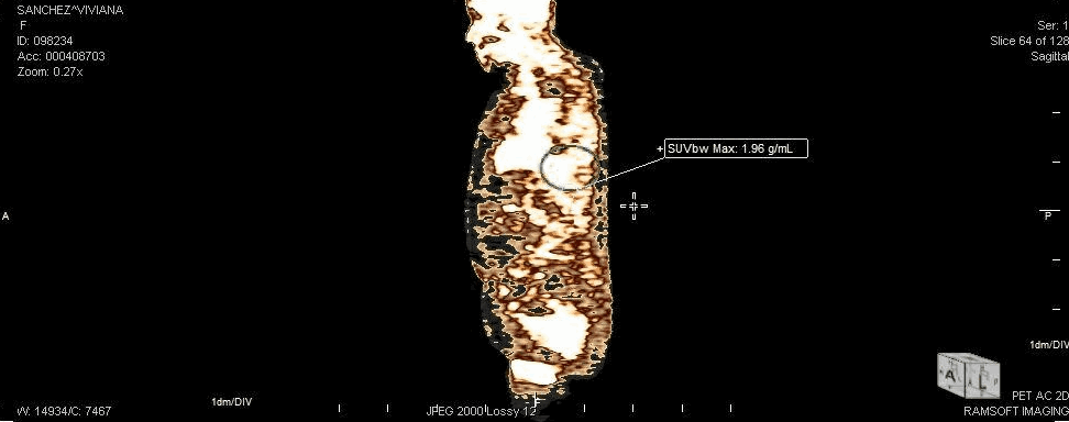 For PET images, the ROI tool will display (depending on the image) SUV Body Weight (SUVbw), SUV Lean Body Mass (SUVlbm) and SUV Body Surface Area (SUVbsa).