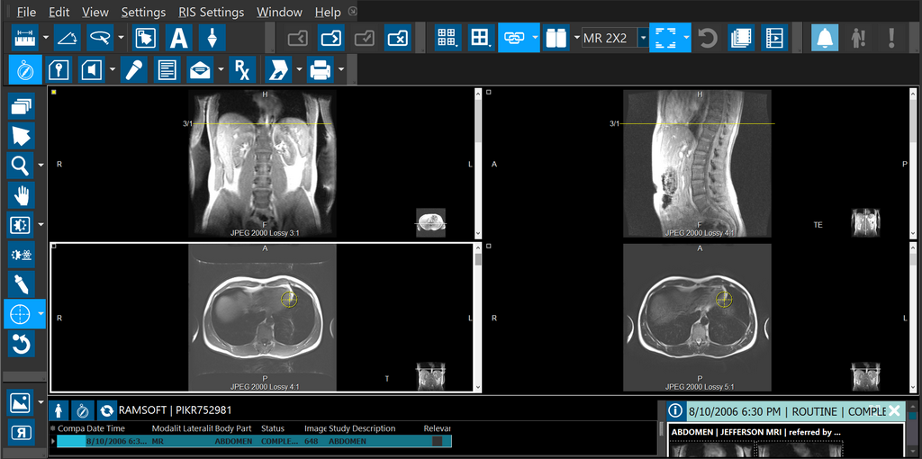 Note: This tool is visible from the Study Desktop toolbar only when you are viewing MR/CT/PT images.