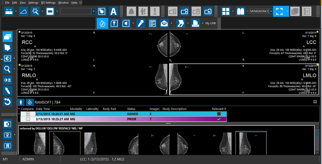 By default, when you open a MG image, you can notice that the R (Right View) images are right justified to be displayed chest wall to chest wall with the L (Left View) images.