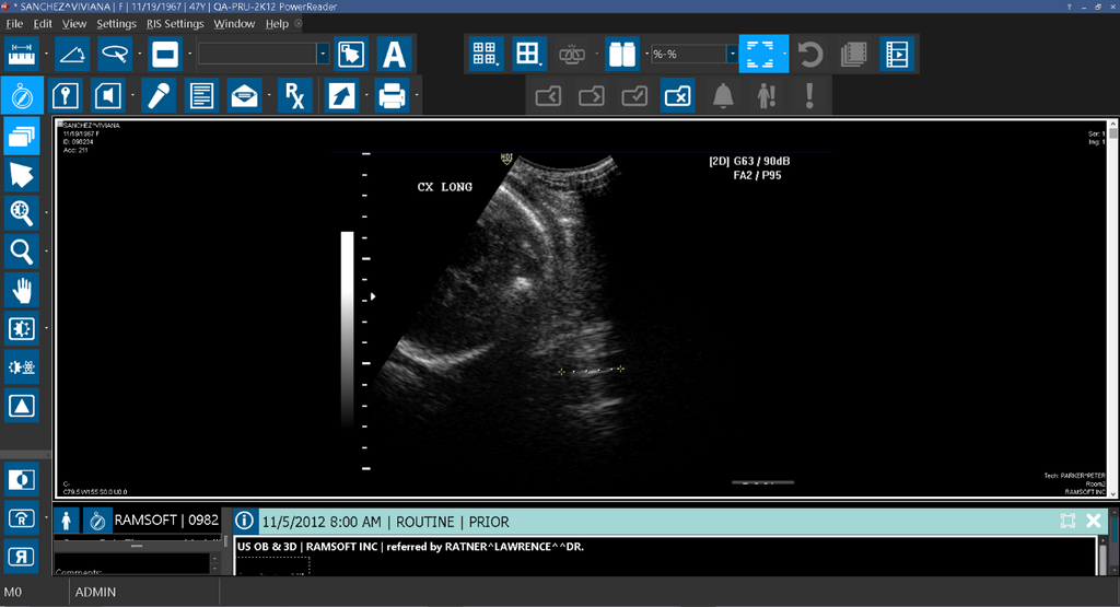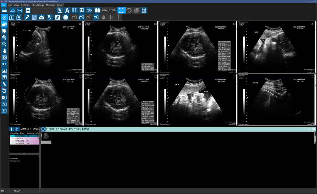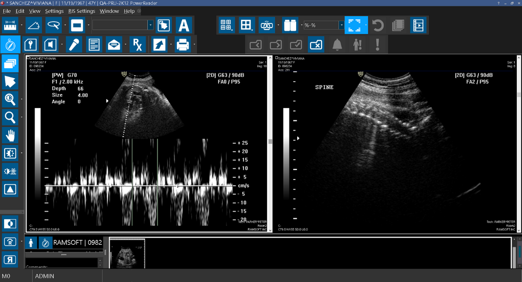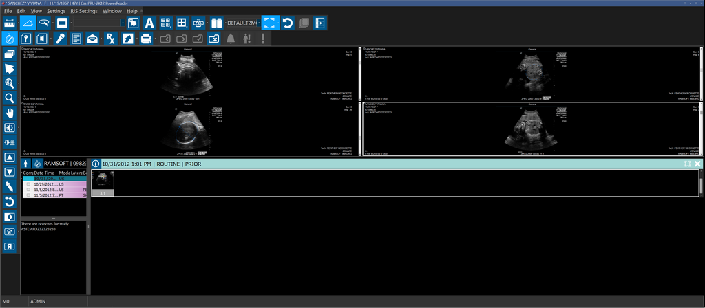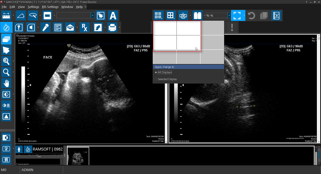 In this example, the current layout that has been setup in the Viewing Protocol Setup settings is 1x2 multiple Viewports layout.
