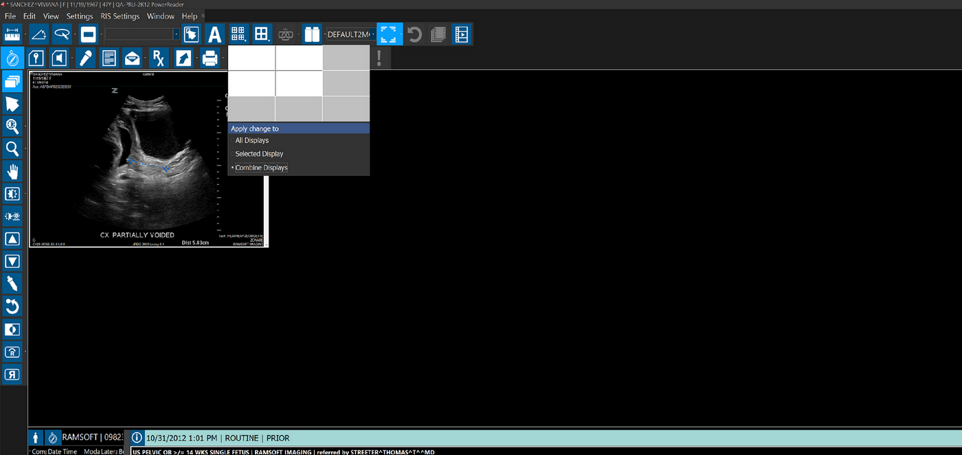 The Combined Displays option applies the layout changes to the combined displays. This option is selected by default if it is enabled in the current viewing protocol. If this option is not enabled in the viewing protocol, the All Displays option is selected by default.
