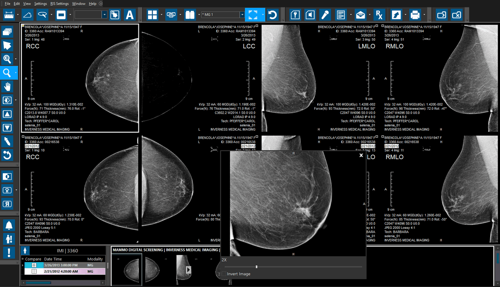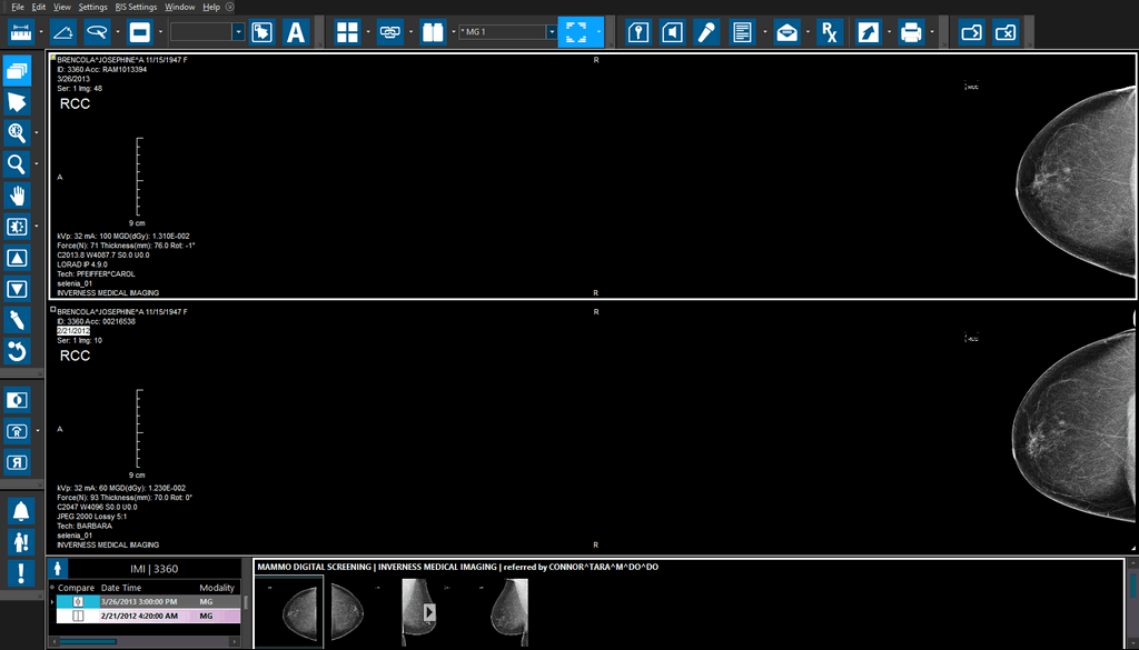 In PowerReader, open an MG study. In this example, the image is not fully zoomed in the viewport. Sometimes, MG studies received from other stations have this problem.