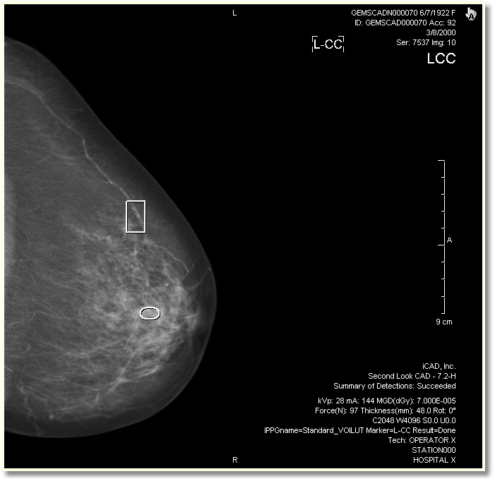 | Rectangular markers indicate area that may have micro calcification. | |