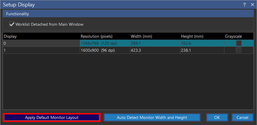 The last option, at the bottom left of the screen, applies the Default Monitor Layout. Clicking the Apply Default Monitor Layout achieves the following: