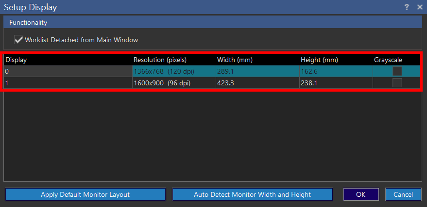 The "Auto Detect Monitor Width and Height" button automatically calculates the Width and Height of all the Monitors that are set up and displays this information according to the correct order of the monitors.