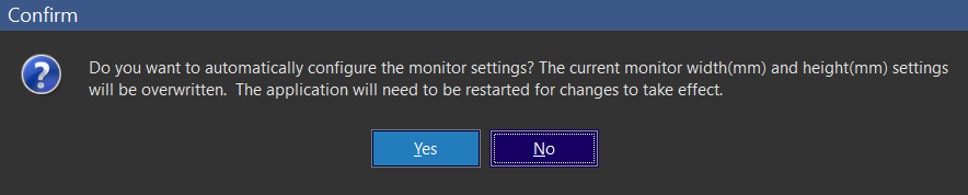 Clicking "Yes" will automatically apply Default Monitor Layout and Auto Detect Monitor Width and Height.