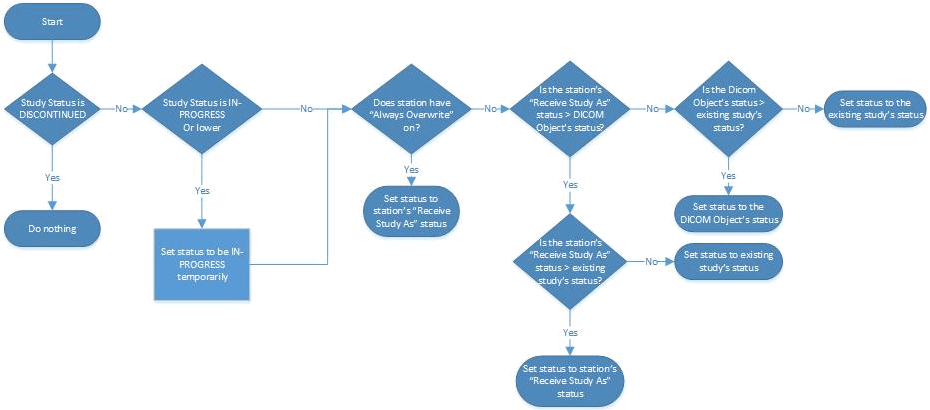 Once the DICOM objects are received in existing study, the STATUS of the study is determined by following system logic.