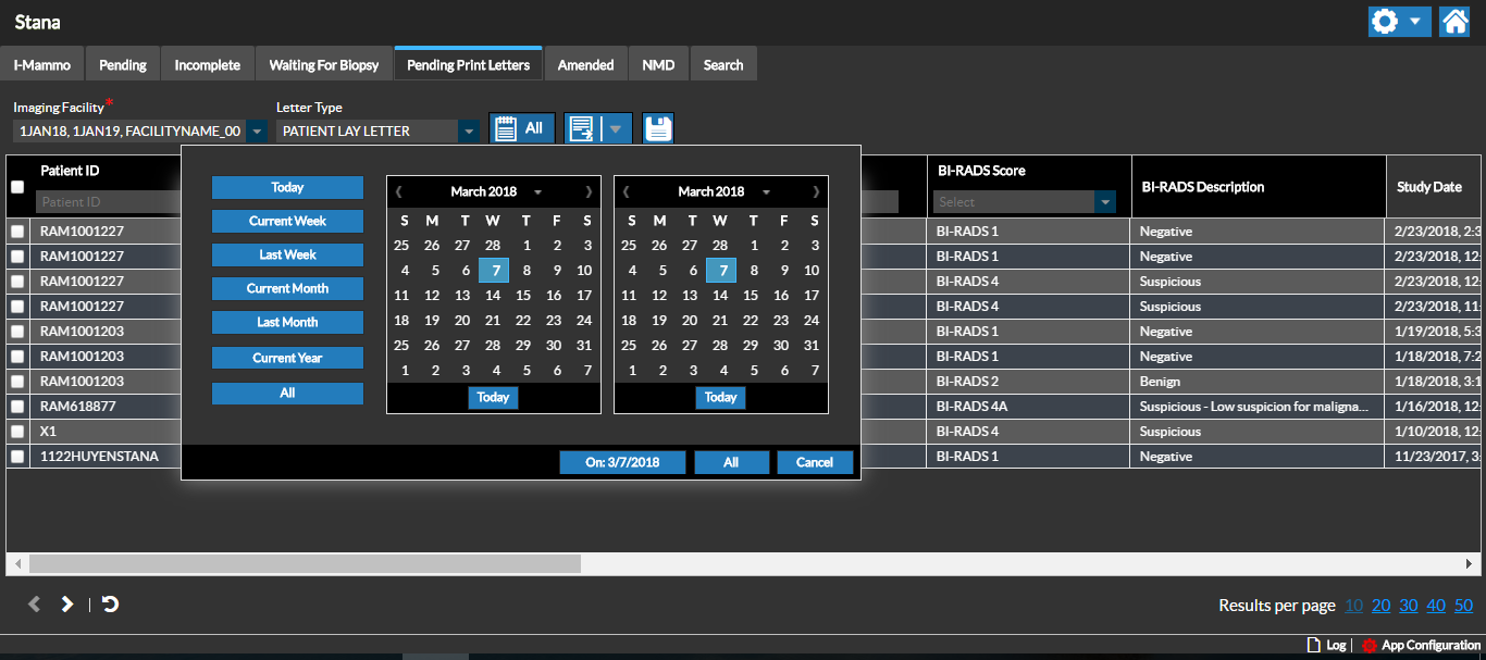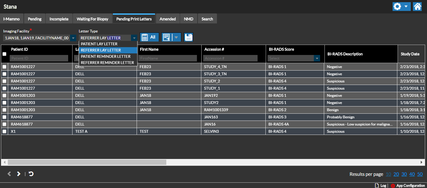 You can at any point in time check how many letters are pending based on the Letter Type for the selected Imaging Facility.