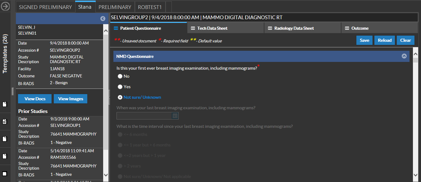 The Patient Questionnaire is a Study level template that displays the Study details and Patient Demographic details along with Family History based on a set of pre-defined questions.