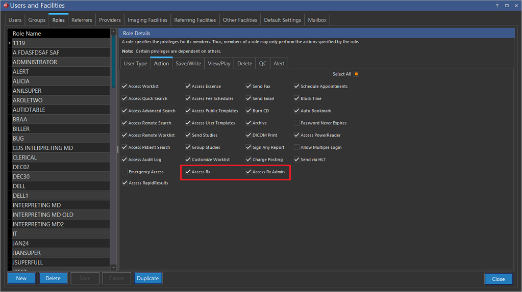While various options have been provided to fulfill the Meaningful Use Criteria, specific rules and restrictions have been defined for these options. There are two types of privileges which have been defined in the Roles section of the PowerReader. They are Access Rx and Access Rx Admin.