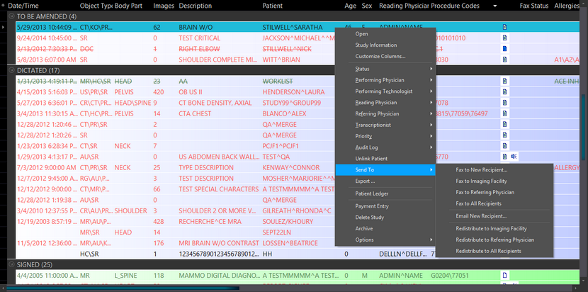 If user has grouped studies of the same patient, then selecting the faxing option will distribute the report only once, instead of based on the number of studies that were grouped.