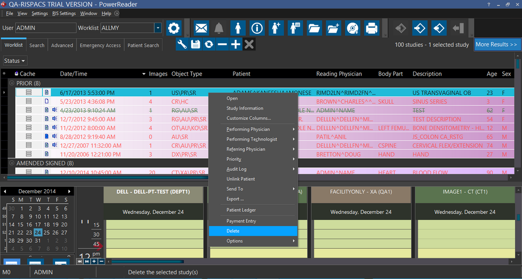 In order to view information about a study you will need to locate the study in your Worklist. Once you have found it, highlight the study and right click on it and scroll down.