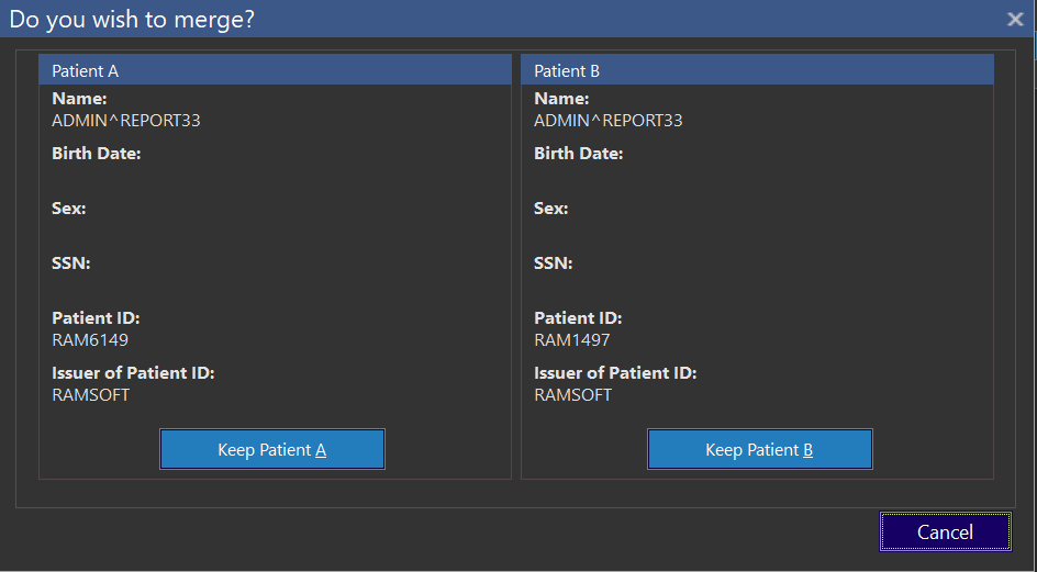 - The Consulting Physician names from both studies are kept in the consulting physician list of Patient B. However, if a Consulting Physician exists in both studies, the name will not be duplicated in the Consulting Physician field.