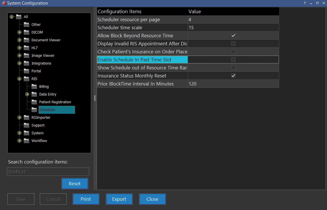 If the "Enable Schedule in Past Time Slot" is unchecked in System Settings (below), appointments cannot be scheduled in the past.