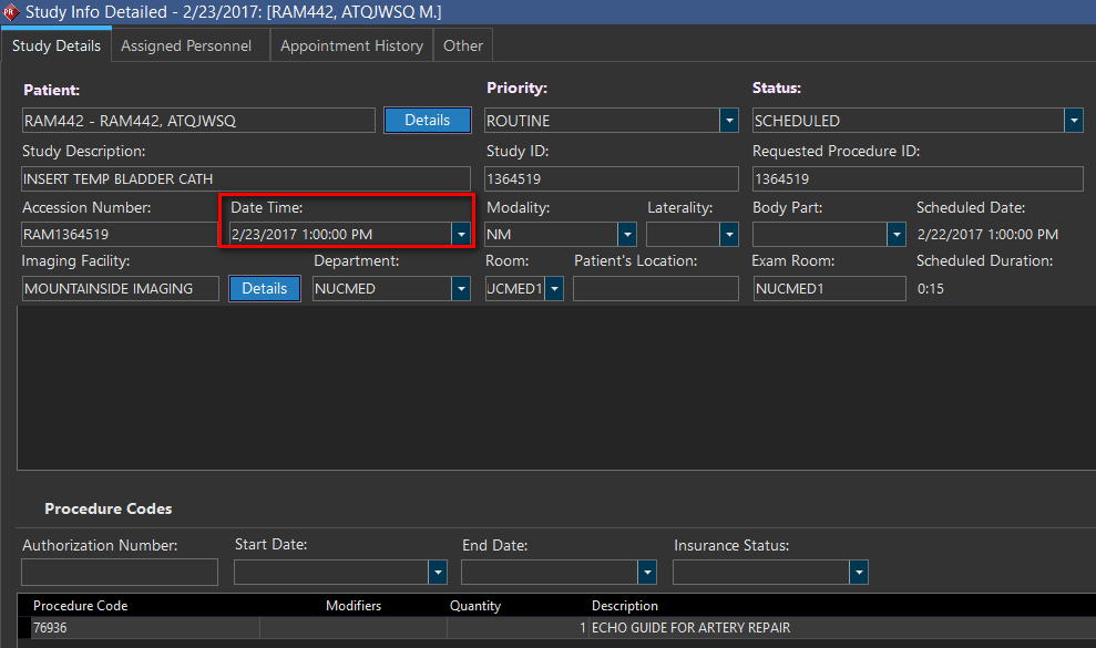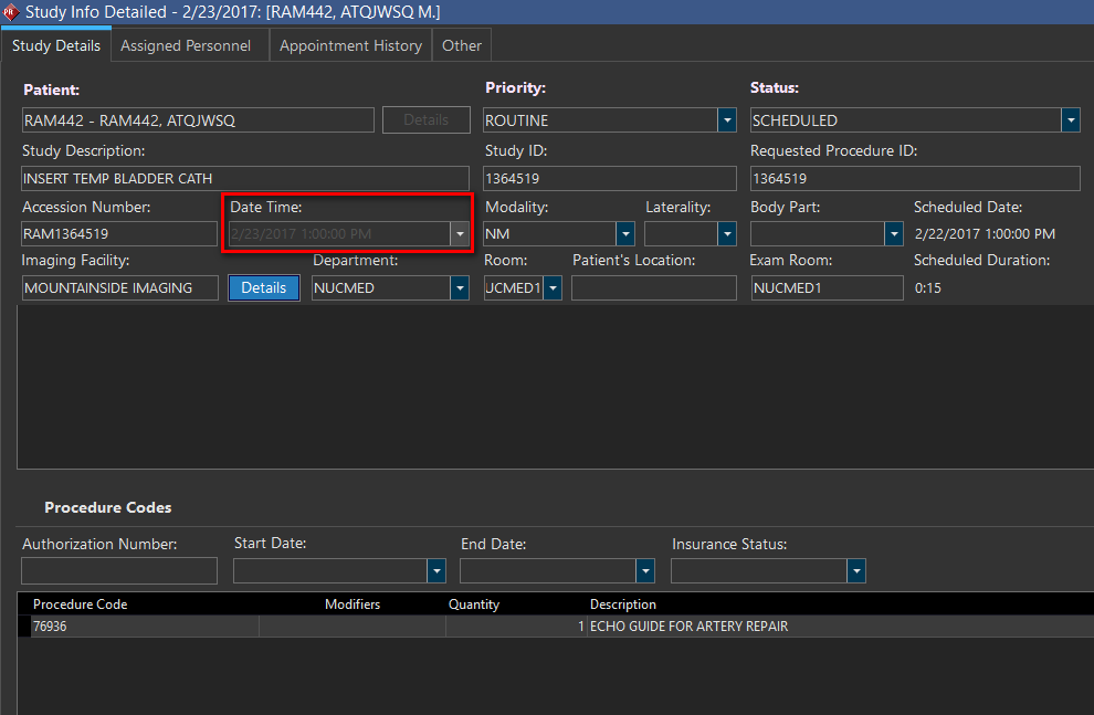 The Date and Time of Studies between the Scheduled to Complete Status cannot no longer be modified. If a study status is outside Scheduled to Complete, it's Date Time can be modified in Study Details, but the change will not be reflected on the Scheduler, and can only be seen in Study Details.