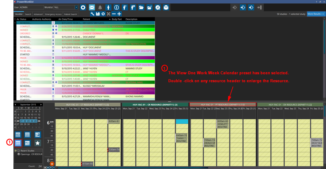 The Show Relevant Resources option displays resources matching the Scheduled Modality of the currently selected study in the Worklist.