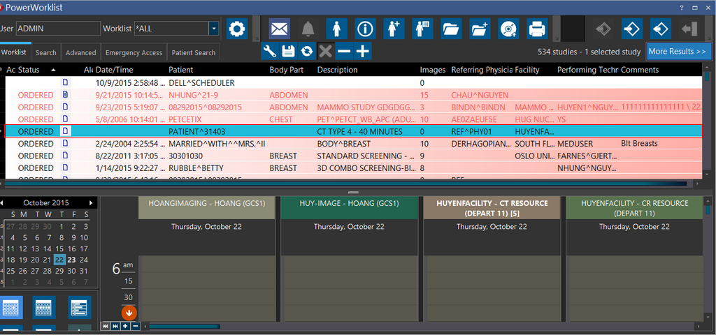 - When double-clicking on a CT resource on the Scheduler, the New Order form only display the CT modality and the Study Type only display the Study Types of CT modality.