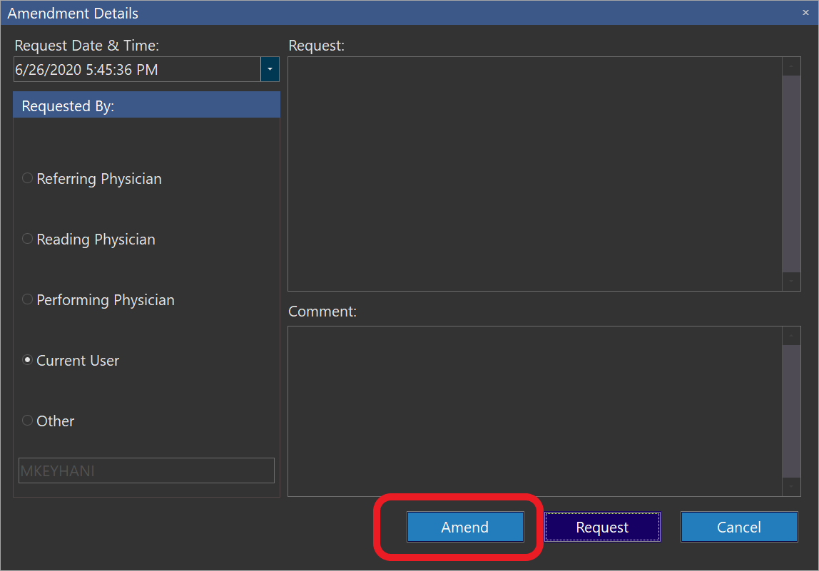 (users who don't have the "Amend Diagnostic Reports" should request an amendment)