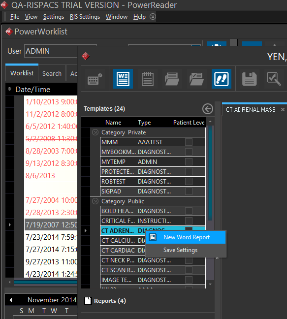 To create a Microsoft Word Report from a template, the Reporting Tool has to be setup to use Microsoft Word Reports. Click on the View/Create Documents button from the study or click on Document Viewer button from Worklist.