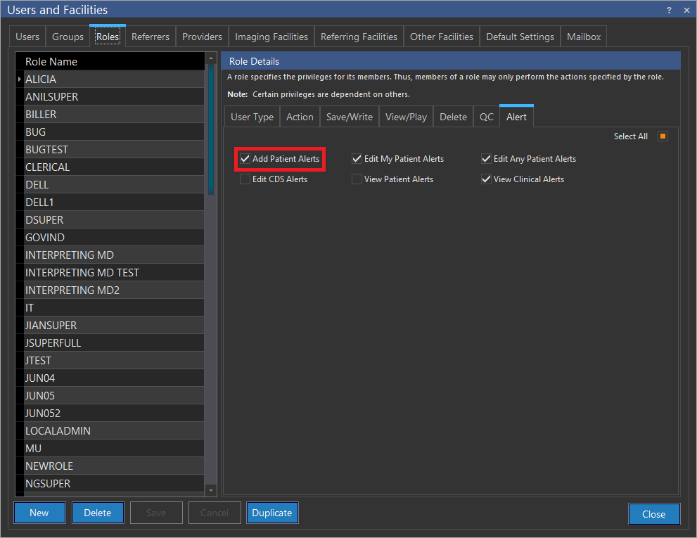 | Edit Any Patient Alerts | • The user can edit any Patient Alerts |
