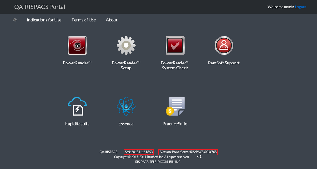 Select, I agree checkbox and click Continue. Only then, the PowerServer portal with application icon to access RapidResults is made available. Ensure that you are accessing the server with correct S/N (Serial Number) and Version details available at the bottom of the login page.