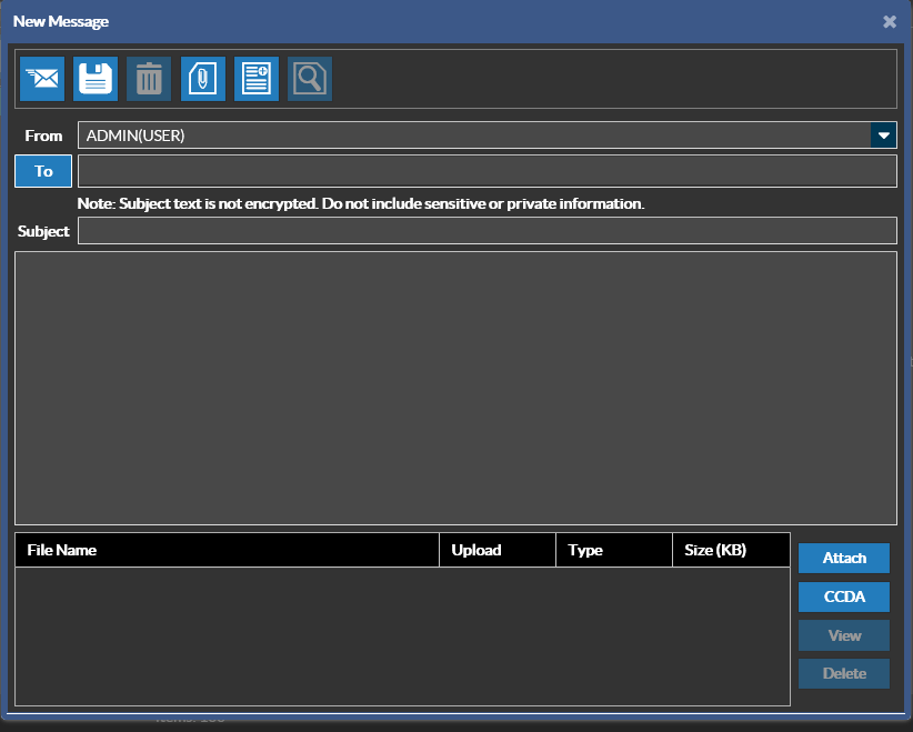 Like any other mail services, you can send and receive emails using this messaging feature. This messaging facility has all features like reply, reply all, forward, download, view, delete attachments, collapse, expand, in-box, drafts, sent items, failed outbox, deleted items, refresh mail, send, save, attach CCDA, discard, and a search field too.