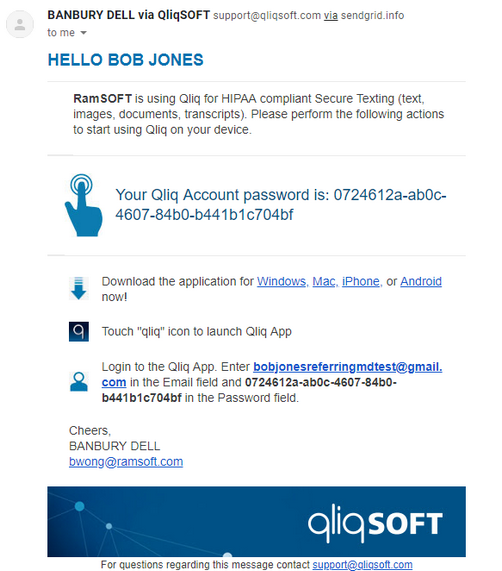 Download, install and launch the qliqCONNECT application to view received messages. An example of a message in the qliqCONNECT application sent by a QliqSOFT Member is displayed below: