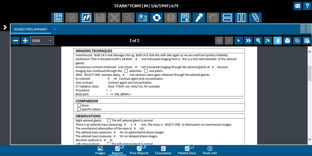 You can see this screen when you click either on the Reports/Prior Reports/Documents/Patient Docs options on the Study toolbar.