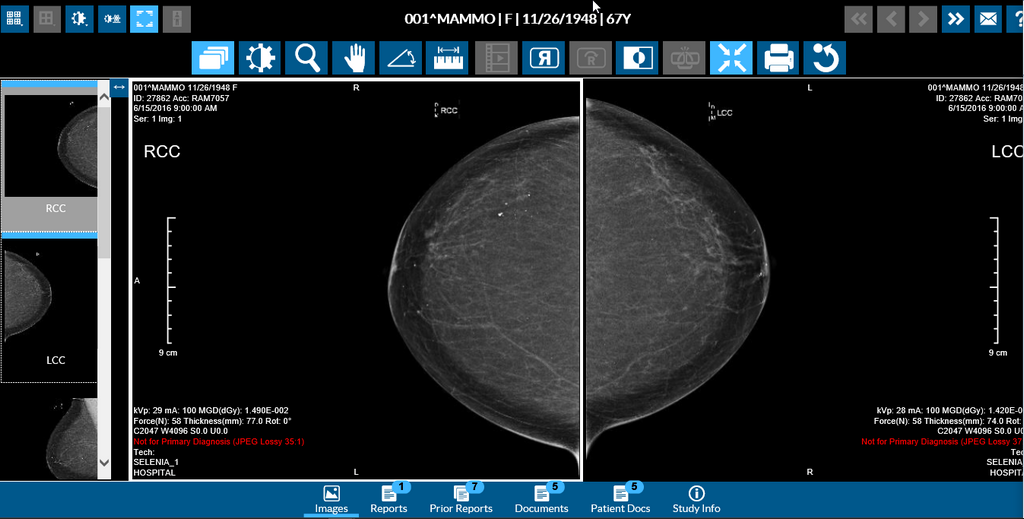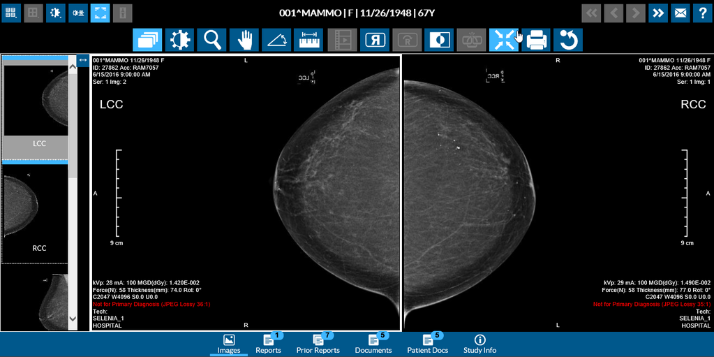 MG images are displayed in RapidResults from Left to Right. By default, when you open a MG image, you can notice that the R (Right View) images are right justified to be displayed chest wall to chest wall with the L (Left View) images.