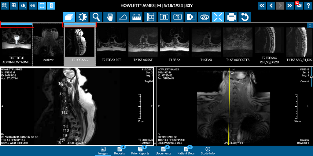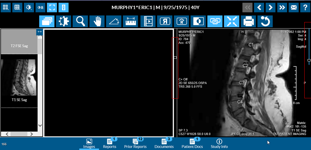 Scrolling can also be duplicated using the keyboard. Scrolling through individual images within a viewport is performed using the left and right arrow keys. The Page Up and Page Down keys can be used to jump between viewports.